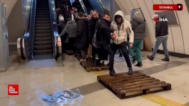İstanbul Küçükçekmece’de bulunan Cennet Mahallesi metrobüs durağının alt geçidinin merdivenlerinden sular gelmeye başladı. Oluşan su birikintisi nedeniyle vatandaşlar suların içerisinden yürümek zorunda kalırken, olay yerine gelen İstanbul Büyükşehir Belediyesi (İBB) İSKİ ekiplerinin tahta paletle önlem aldığı görüldü.