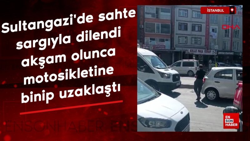 Sultangazi’de kendisini yaralı gibi göstererek dilenen bir kişinin, gün sonunda motosikletine binerek bölgeden ayrıldı.