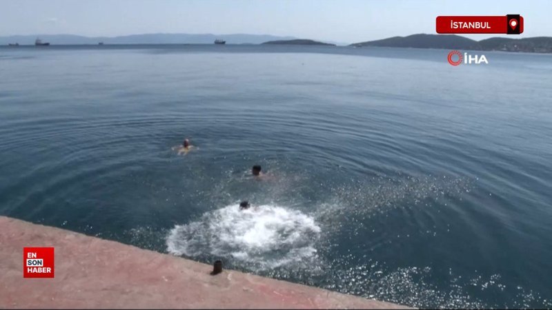 İstanbul'da günlerdir etkisini sürdüren yüksek sıcaklıklara çözüm olarak vatandaşlar, Kartal Sahili'nden denize girerek gün boyunca serin suların keyfini çıkardı.