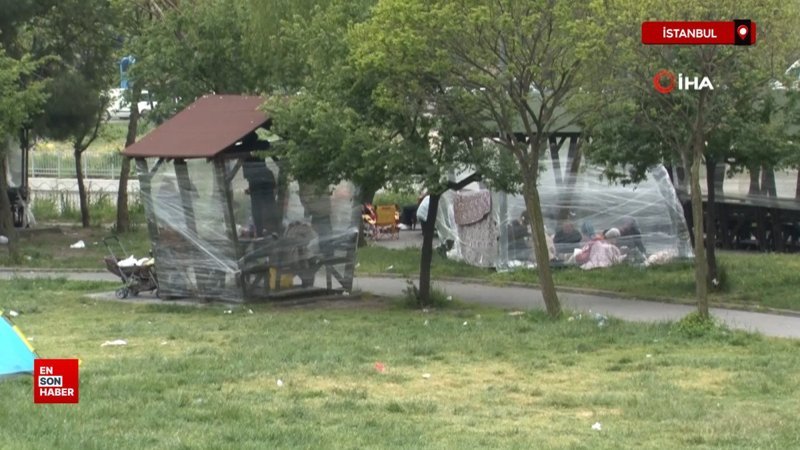 Depremin ardından evlerine girmek istemeyen vatandaşlar park ve bahçelerde uyudu. Soğuk ve rüzgardan korunmak için bankların ve ağaçların etrafını streç ile kapatan vatandaşlar, aileleri ile birlikte binalardan uzak alanlarda sabahladı.