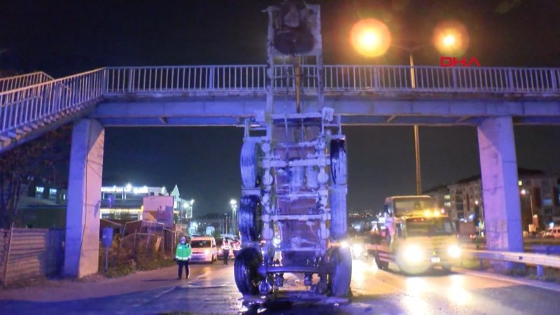 Büyükçekmece ilçesinde seyir halinde olan bir tırın damperi açılarak, üst geçide çaptı. Damper üst geçide takılı kalırken, tırın ön kısmı yaklaşık 20 metre sürüklendi.