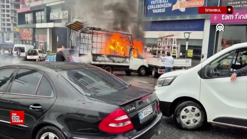 Beylikdüzü'nde, D-100 kara yolunda seyir halindeyken yanan karton yüklü kamyonette hasar meydana geldi.