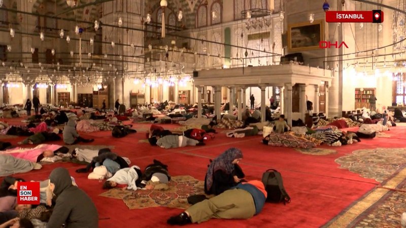 Silivri açıklarında meydana gelen 6.2 büyüklüğündeki depremin ardından evlerine girmek istemeyen İstanbullular, geceyi camiler, okullar, parklar ve spor salonlarında geçirdi. Fatih Camii’nde toplanan onlarca kişi burada günün aydınlanmasını bekledi.