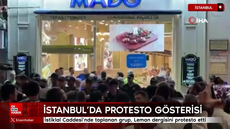 İstiklal Caddesi'nde toplanan grup, Leman dergisini protesto etti