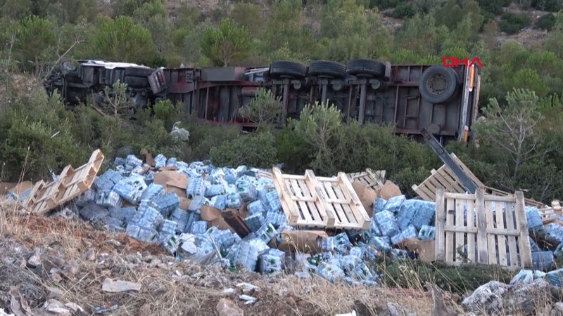 İzmir'de sürücü uyuya kaldı, hareket eden tır devrildi