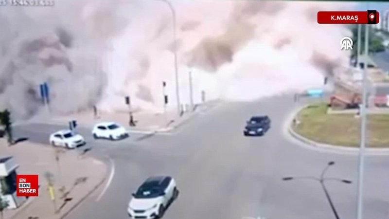 Kahramanmaraş'ta ağır hasarlı binanın yıkım sırasında iş makinesinin üzerine devrilmesi sonucu enkaz altında kalan operatör yaşamını yitirdi. Binanın yıkılma anı güvenlik kamerasına yansıdı.