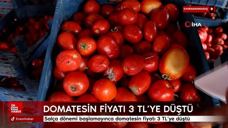 Kahramanmaraş'ta salça dönemi başlamayınca domatesin fiyatı 3 TL'ye kadar düştü. Sıcakların artmasıyla birlikte salça sezonunun başlaması ve domatese olan talebin canlanması bekleniyor