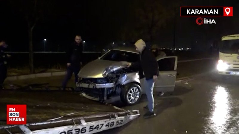 Karaman’da kontrolden çıkan otomobil aydınlatma direğine çarptı