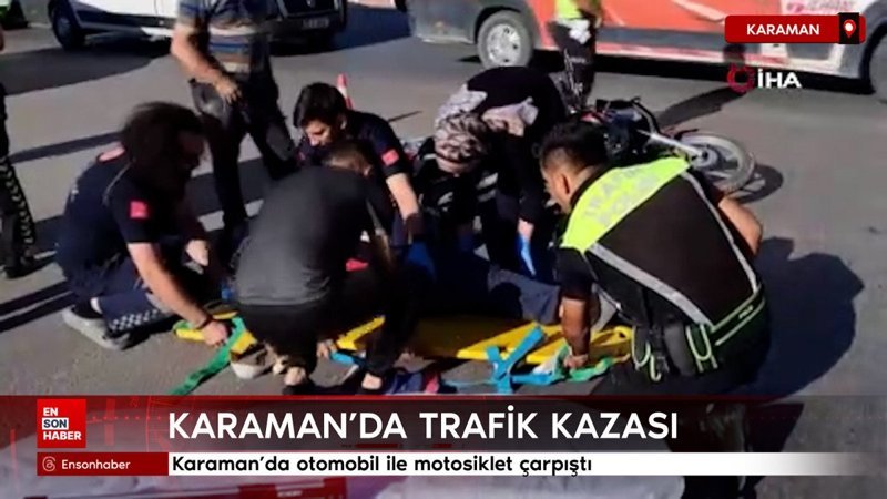 Karaman’da otomobil ile çarpışan motosiklet sürücüsü yola savrularak yaralandı.