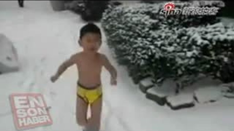 Çinli bir anne ve babanın 4 yaşındaki ufak çocuklarına üzerinde sadece bir iç çamaşırı ile kar üzerinde şınav çektirmeye çalışması izleyenleri şoke etti