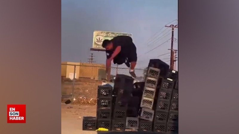 Kasaların üzerinde dengede durmaya çalışırken düştü