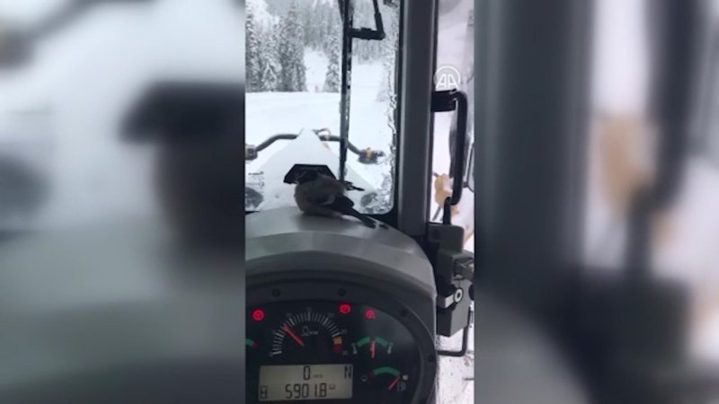 Kastamonu'da bir iş makinesi operatörü, karlı yolları açtığı sırada donmak üzereyken bulduğu kuşu ısıtıp yiyecek verdi.