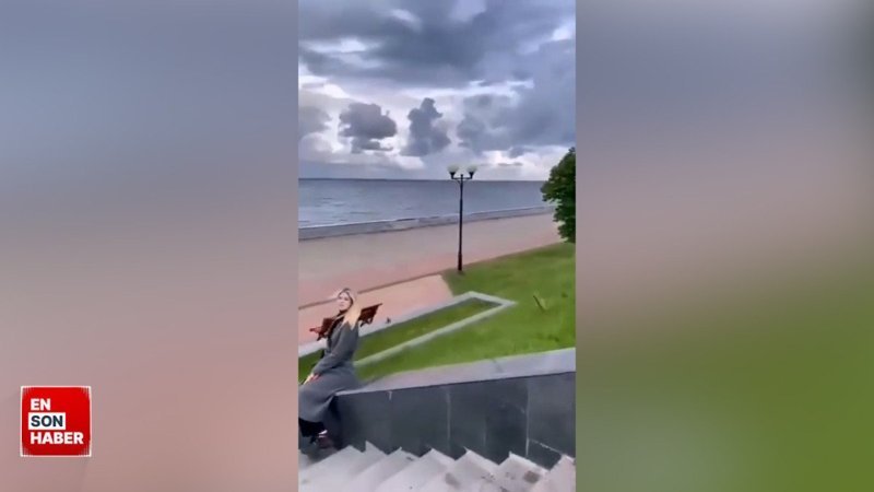 Kayarak video çektiren talihsiz kadın kafasını çarptı