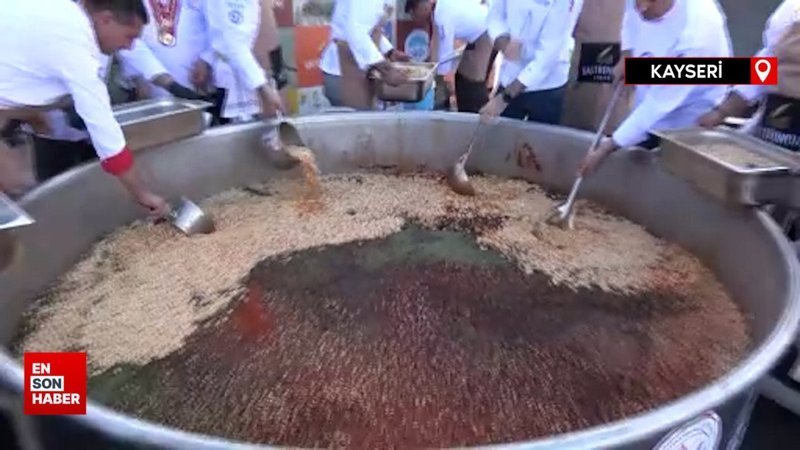 Kayseri’de Cumhuriyet’in 100. yılı dolayısıyla düzenlenen etkinlikte, 1 ton mantı tek bir kazanda pişirilerek dünya rekoru kırıldı.
