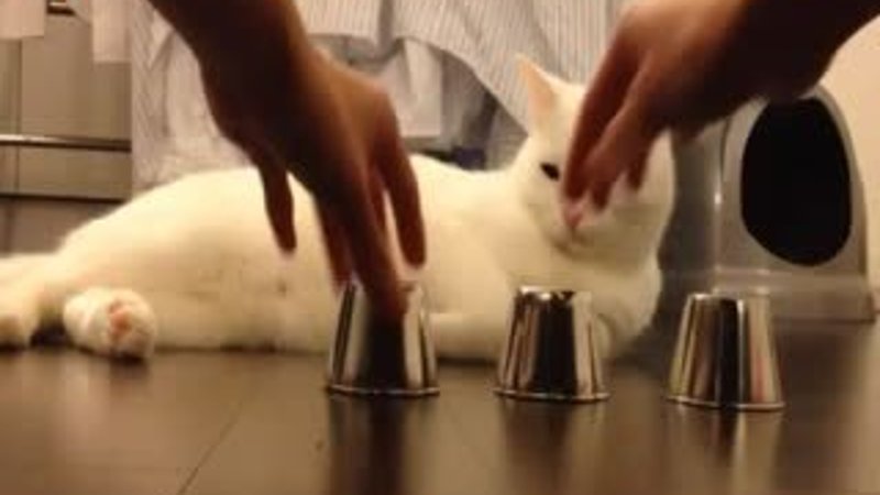 Kedinin bardakların içerisindeki topu bulması şaşırttı