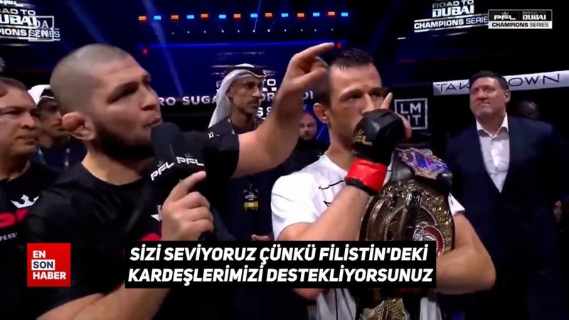 Khabib Nurmagomedov, MMA dövüş maçı sonrası Filistin'i destekledikleri için İrlanda halkına teşekkür etti.