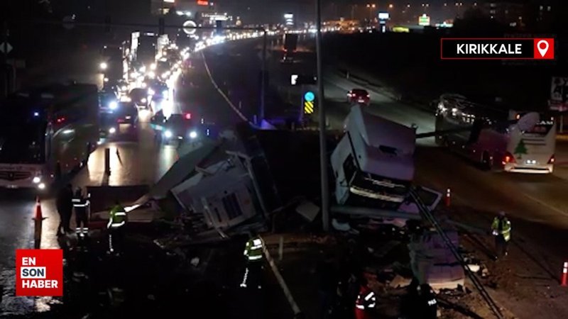 Kırıkkale'de trafo yüklü tır aydınlatma direğine çarptı