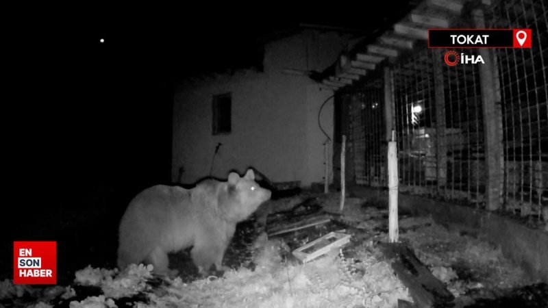 Tokat'tın Başçiftlik ilçesinde kış uykusuna yatmayan ayılar ilçe merkezine inerek meyve bahçesini talan etti.