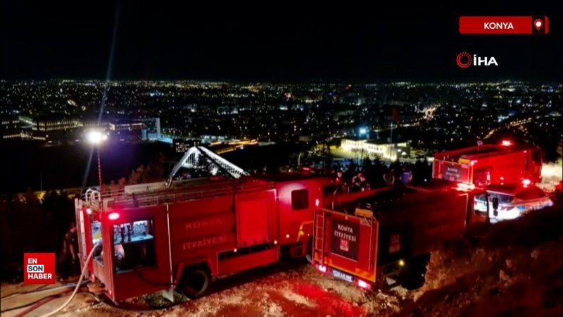 Konya'da atılan havai fişek, ağaçlık alanda yangına sebep olurken, alevler itfaiye ekipleri tarafından kısa sürede söndürüldü.