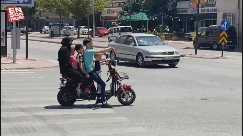 Konya’da elektrikli bisiklete 5 kişi binen aile kameraya yansıdı