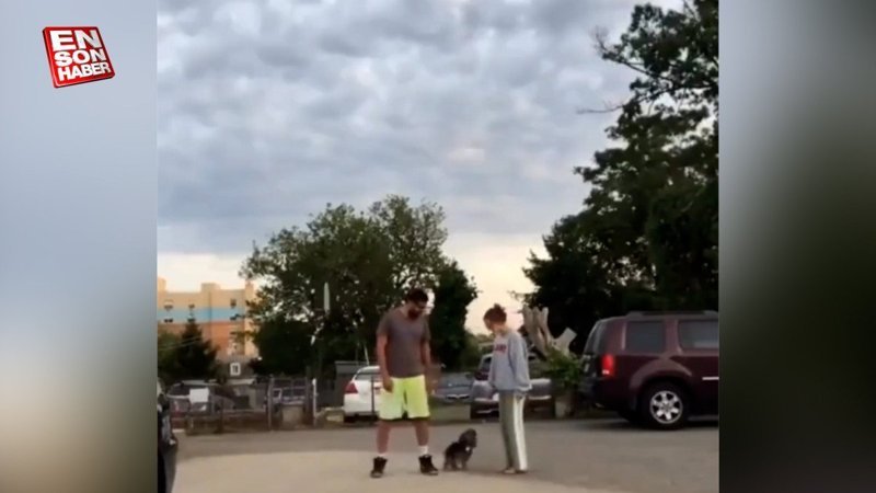 Köpeklerinin kimi daha çok sevdiğini görmek için zıt yöne koşan çiftin sevimli köpeği
