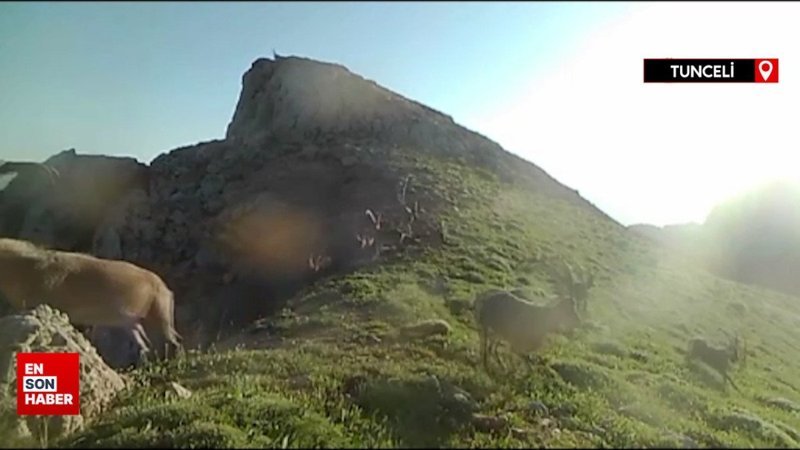 Tunceli’de koruma altında bulunan yaban keçileri, sürü halinde fotokapana takıldı.