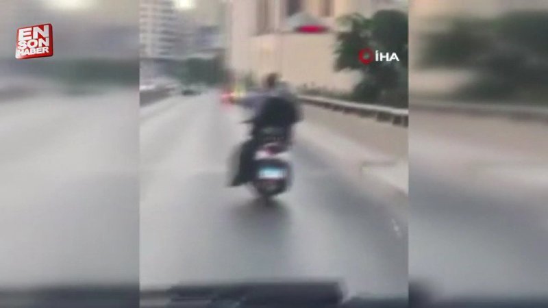 Beyrut’ta serum takılı olan hasta kadının motosikletle seyahat ettiği anlar kameralara yansıdı.