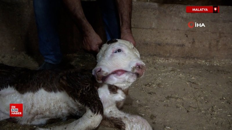 Malatya’nın Akçadağ ilçesinde çift başlı doğan buzağı görenleri hayrete düşürdü.