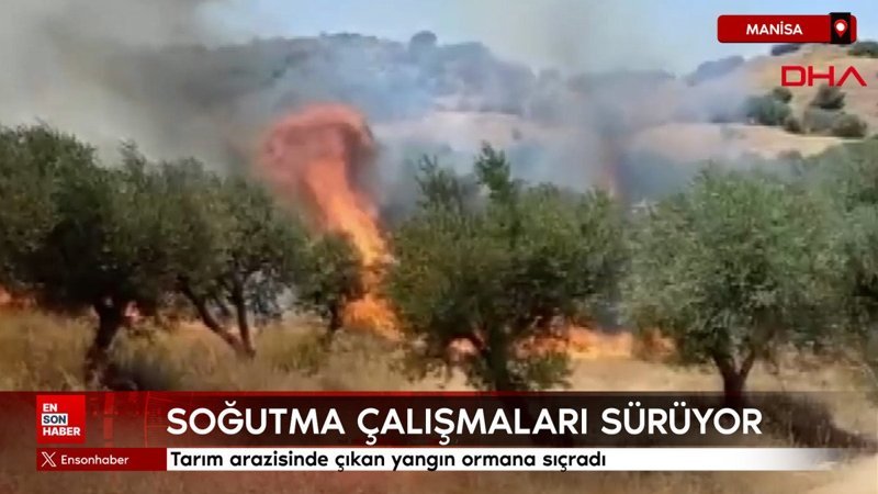 Manisa'nın Turgutlu ilçesinde evlere yakın bölgede tarım arazisinde çıkan yangın ormana sıçradı. Alevler, karadan ve havadan müdahalelerle 1 saatte kontrol altına alındı.