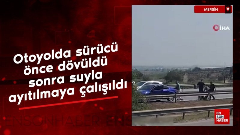Mersin-Adana otoyolunda iki sürücü arasında çıkan tartışmada araçtan indirilen bir sürücü, önce darbedildi sonra su ile ayıltılmaya çalışıldı.