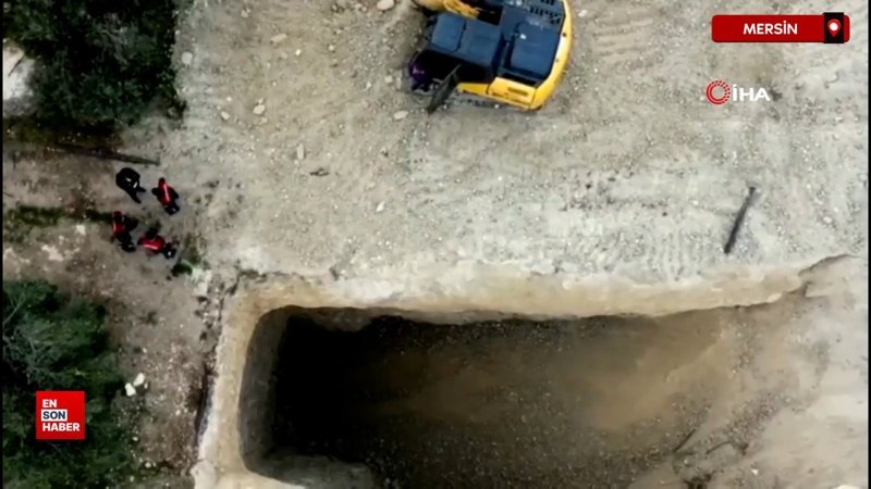 Mersin'de jandarma ekipleri iş makinesiyle define amaçlı kaçak kazı yapan ekipleri dron ile tespit edip suç üstü yakaladı.