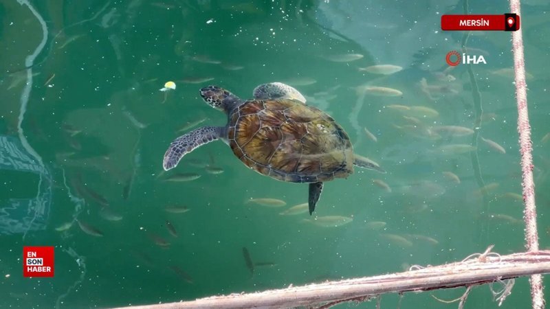 Mersin'de kolay beslenmeye alışan deniz kaplumbağaları barınağını terk etmiyor
