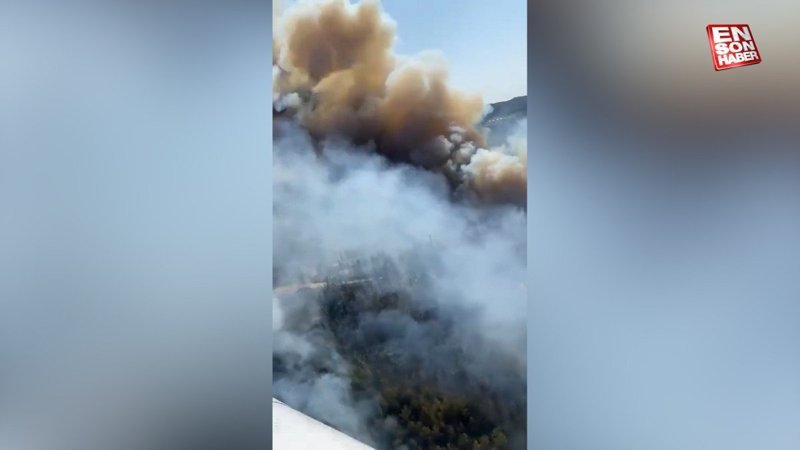 Milas-Bodrum Havalimanı yolunda çıkan yangın havadan görüntülendi