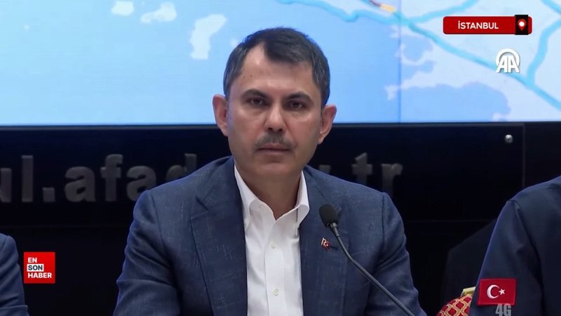 Çevre, Şehircilik ve İklim Değişikliği Bakanı Murat Kurum, İstanbul'da meydana gelen depreme ilişkin açıklamada bulunuyor.