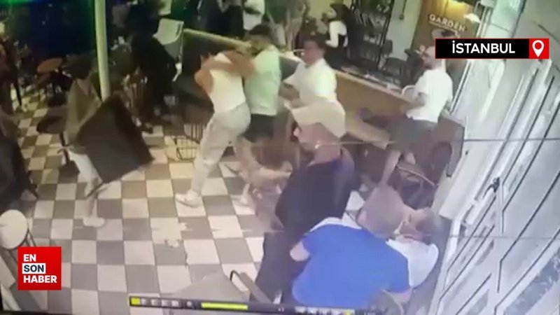 Aralarında daha önce husumet olduğu iddia edilen ikili arasında çıkan tartışma tekme ve yumruklu kavgaya dönüştü. Sandalye ve masaların havada uçuştuğu kavga anı kameralara yansıdı. Polis tarafları gözaltına aldı.