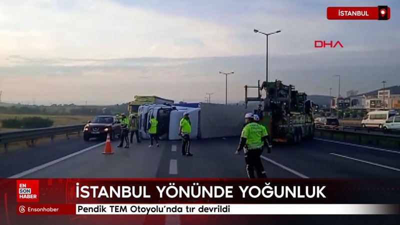 Pendik TEM Otoyolu'nda tır devrildi. Kazada yaralanan olmazken, İstanbul istikametinde trafik yoğunluğu oluştu.