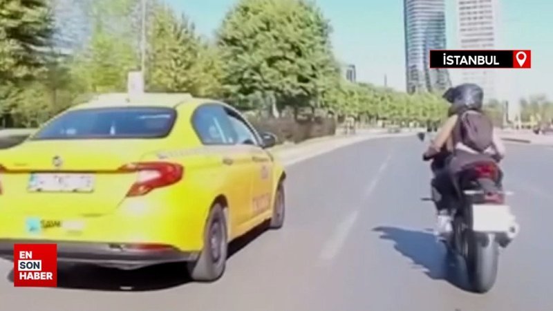 Pendik’te motosiklet sürücüsü, kendisine çarpan taksiciyi kovaladı