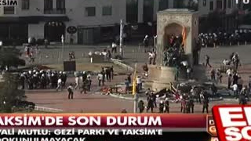 Eylemin 15. gününde Taksim meydanına giren Polis, AKM'de asılı olan pankartları topladı.