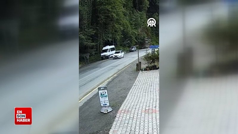 Rize'de yamaçtan kopan kaya parçasının, seyir halindeki aracın önüne düşme anı güvenlik kamerasınca kaydedildi.