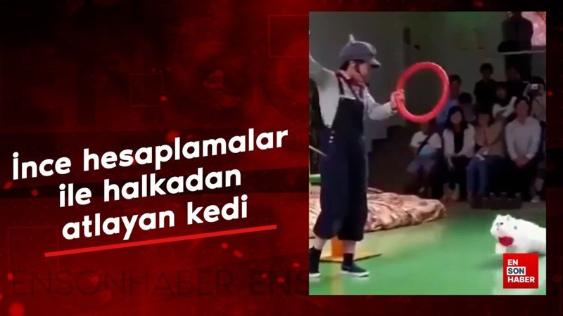 Sahibinin tuttuğu halkanın içinden geçmek için ince hesaplamalar yapan kedi