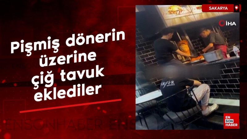 Geçtiğimiz günlerde yaşanan zehirlenme olayının ardından bu kez Sakarya'nın Sapanca ilçesinde kayda alınan görüntülerde, pişmiş dönerin üzerine çiğ tavuk eklediği görüldü.