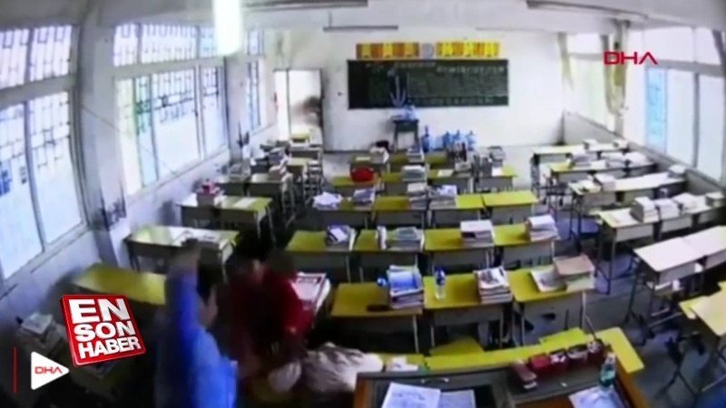 Çin’de kadın öğretmen, öğrencisinin velisi ile sınıfta konuştuğu sırada içeriye giren saldırgan tarafından darbedildi. Polis, saldırganı arıyor.