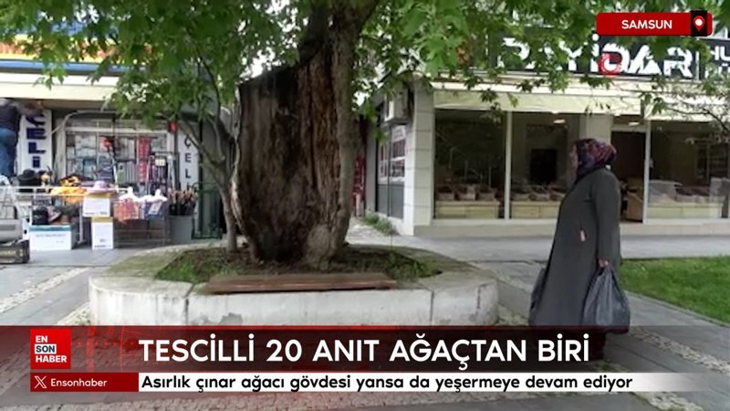 Samsun’un İlkadım ilçesinde yer alan ve gövdesi yandıktan sonra dış kabuğu üzerinde hayata tutunan tescilli asırlık çınar ağacı, görenleri hayrete düşürüyor. Dışarıdan bakıldığında içi tamamen boş olan ve sadece dış kabukla ayakta kalan çınar ağacı, üst dallarındaki yeşilliklerle doğaya tutunmaya devam ediyor.