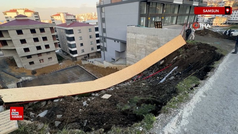 Samsun’da bir inşaat çalışması sırasında toprak kayması meydana geldi, yol trafiğe kapatıldı.
