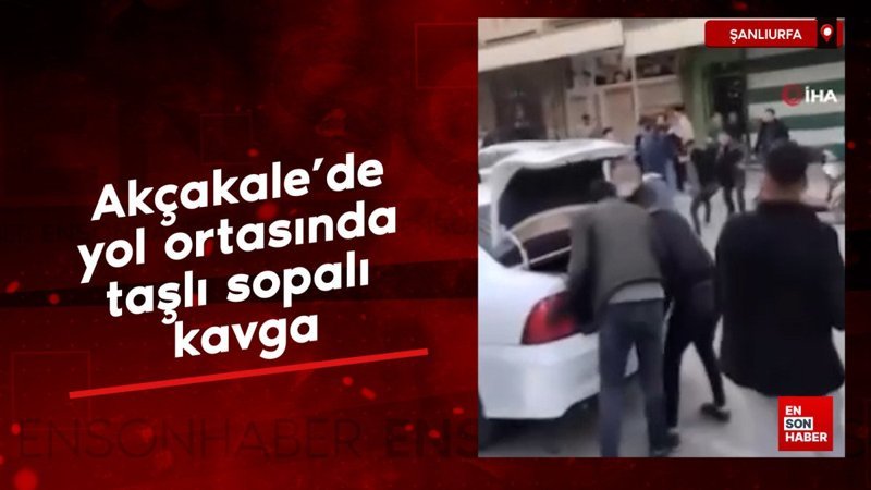 Şanlıurfa'da akçakale'de yol ortasındaki taşlı sopalı kavga