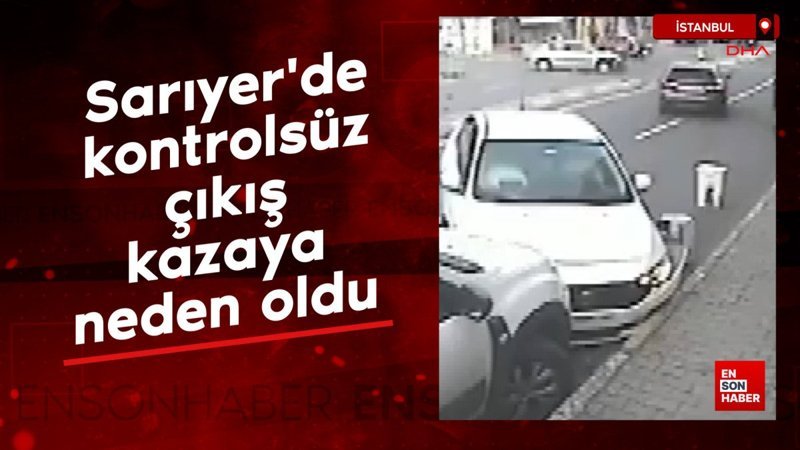 Sarıyer'de seyir halindeki otomobil, yola kontrolsüz çıkan araca çarptıktan sonra refüjü aşarak karşı şeride geçti. Park halindeki cipe çarparak durabilen otomobil sürücüsünün yardımına çevredekiler koştu. Kaza anı güvenlik kamerasına yansıdı.