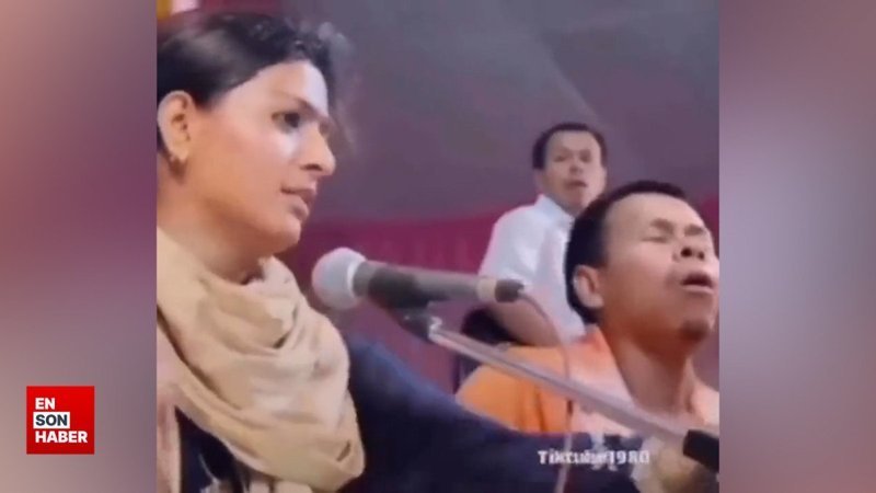 Bu kadın heyecanla şarkıya başladığında yanındaki adamı korkutuyor ve şarkıya kendini kaptırınca fark etmeden ona vuruyor.