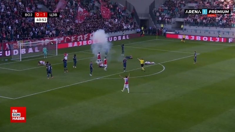 Sırbistan Kupa finali maçında Vojvodina ve Kızılyıldız arasında yaşanan olayda, sahaya atılan patlayıcı madde sonucu dört futbolcu yere yığıldı.