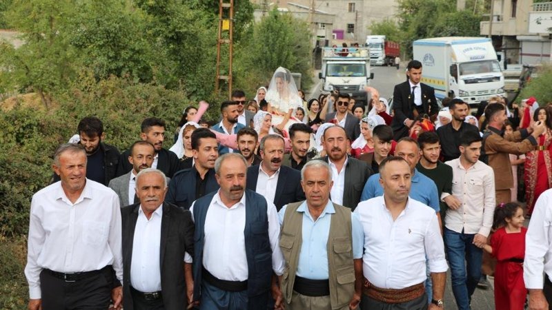 Bölgenin örf ve adetlerine göre, uzun konvoylar yerine gelin ve beraberindekiler süslenen atlara bindirilip düğün evine götürülüyor.