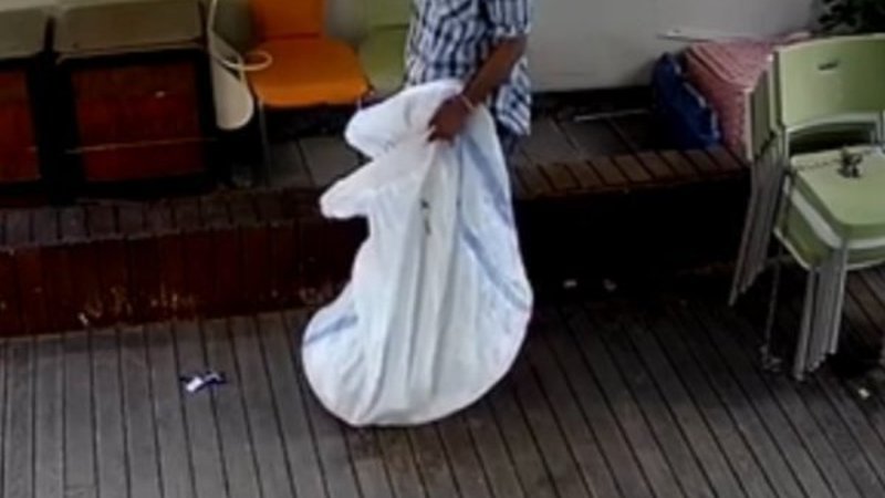 Akşam saatlerinde bir büfeye gelen hırsız, çalacak bir şey bulamayınca duvarda asılı gitar ile uzatma kablosunu çalıp kayıplara karıştı.